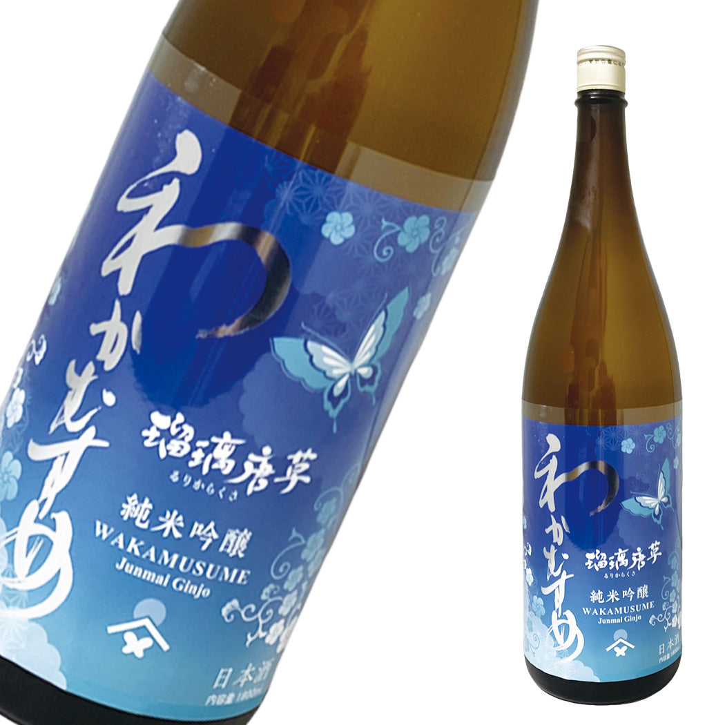 山口県の新谷酒造が手がける、人気銘柄「わかむすめ」シリーズより、四季折々の表情を映し出す一本「瑠璃唐草(るりからくさ)」。