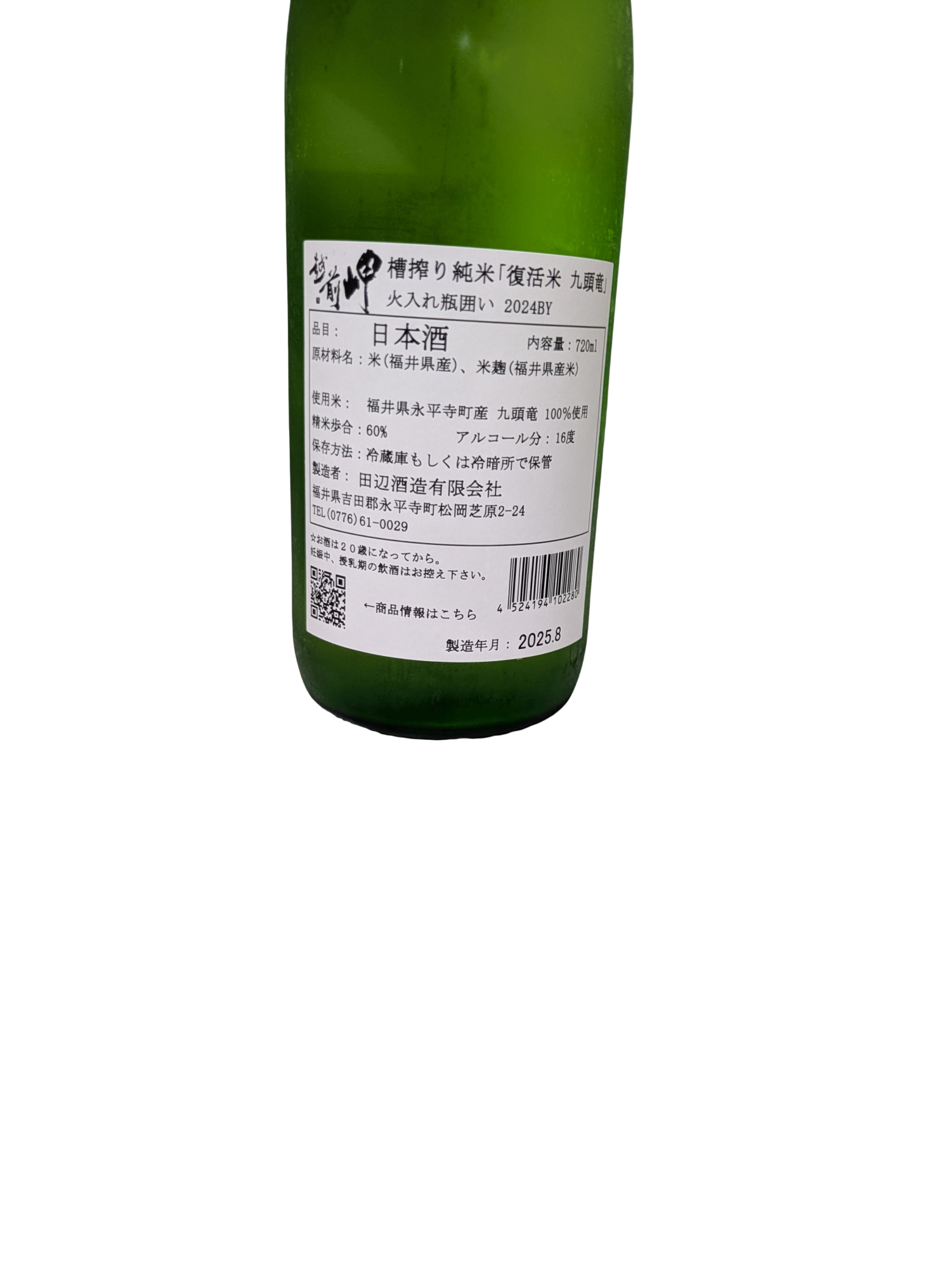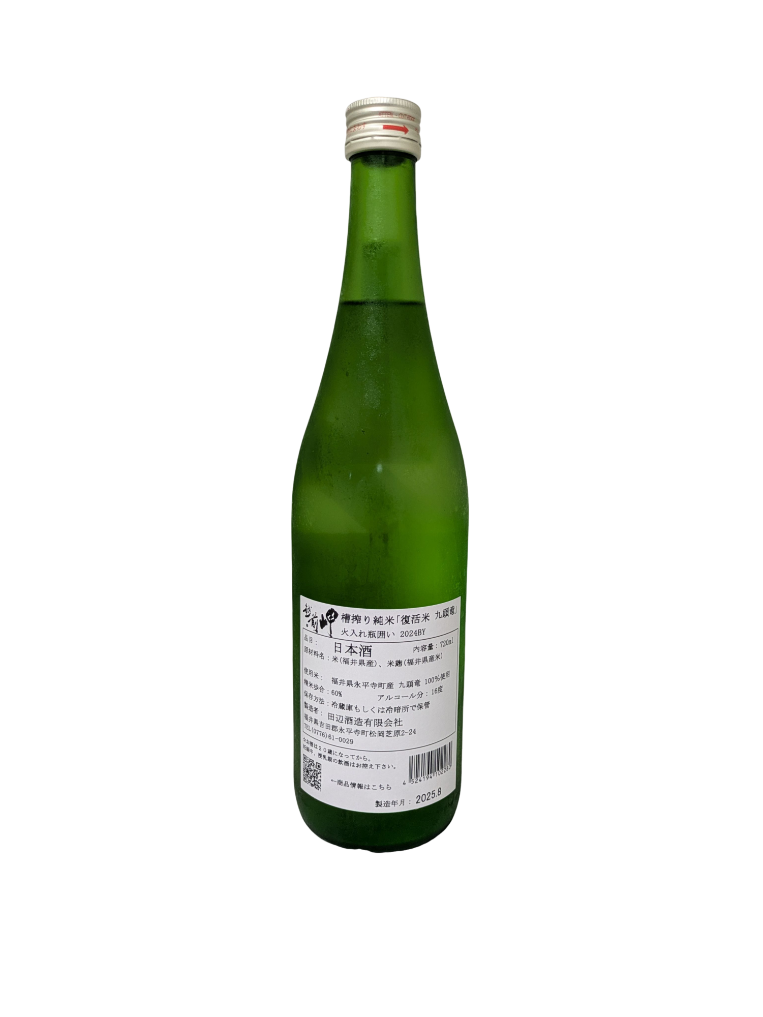 原料米:福井県永平寺町産「九頭竜」100%